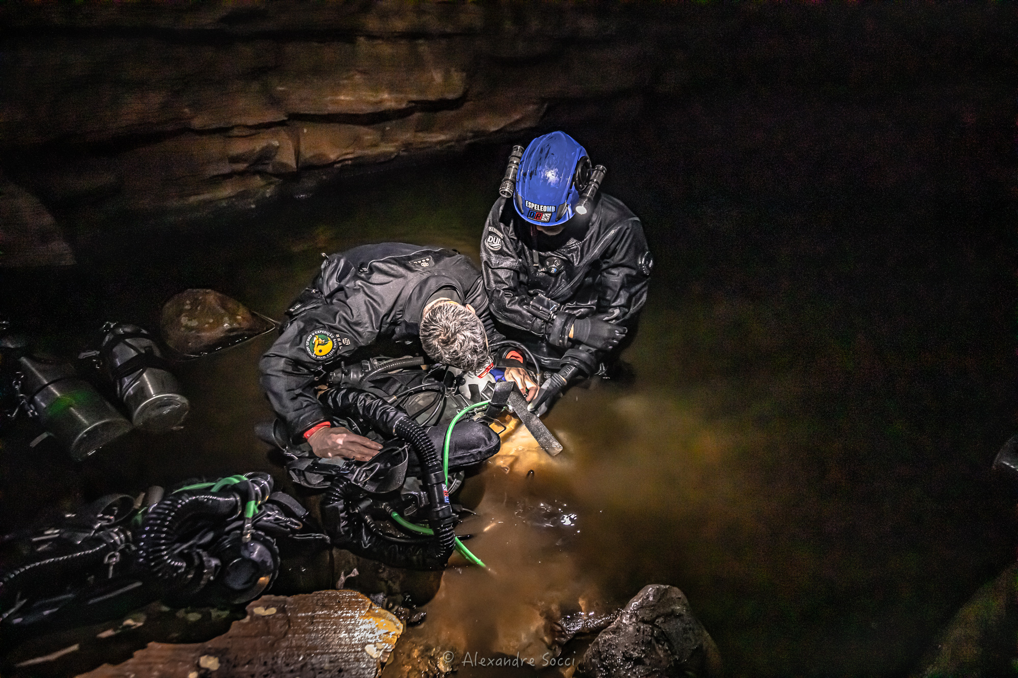 Lapa Doce is a huge cave system currently under exploration in the Chapada Diamantina region of Brasil. Despite many attempts no system connections had been made until the Bahia Expedition, made up of cavers and divers from the Espeleo Mergullo Brazil team, dived a siphon that connected Lapa Doce 1 and 2. This incredible achievement was followed by a dive the team described as one of their top three exploration dives of all time, connecting the northern section via the Jorge Lima siphon.